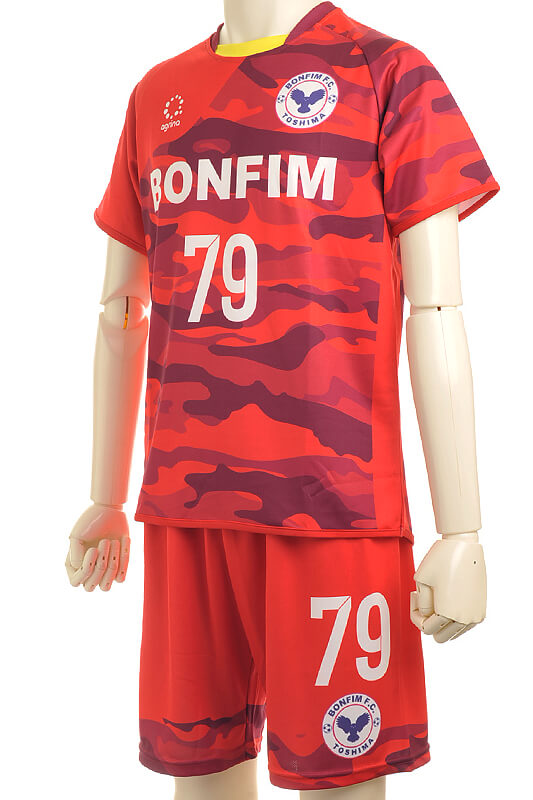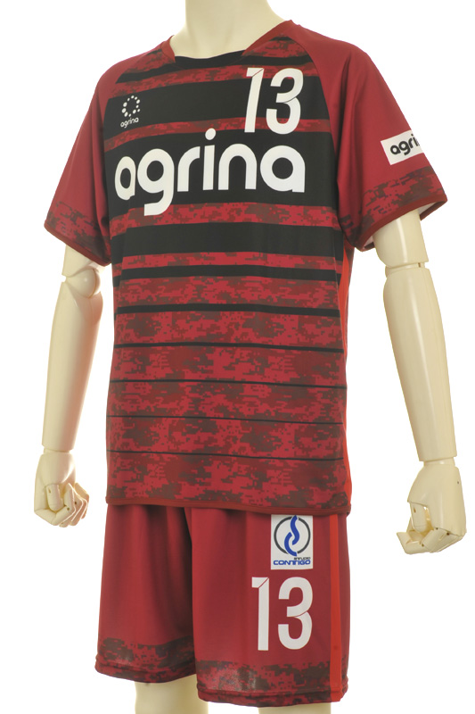 弊社が運営する、ブランド事業 アグリナ / agrina の昇華ユニフォームをご提供いたします。フルセット(シャツ・パンツ・ソックス)で定価16,300円(税別)商品になります。ご希望のチームカラーにカスタム可能!チーム名、番号、エンブレムなどももちろん無料です。妥協無しのオンリーワンユニフォームを作成します。 - ❷昇華プリント